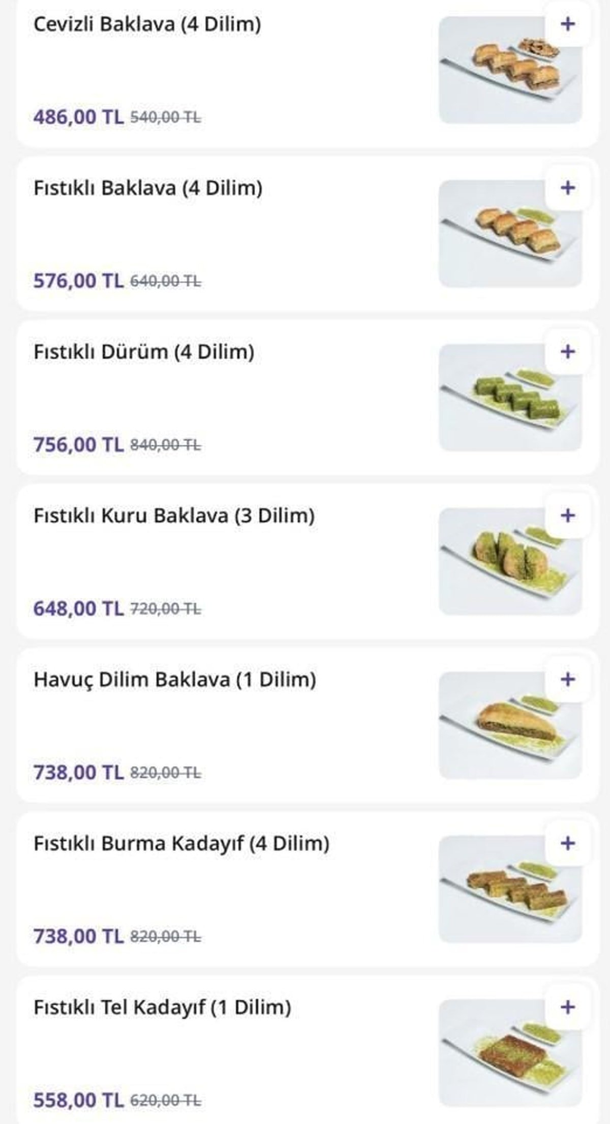 İnternet üzerinden paylaşılan fiyat listesinde sadece baklava değil, diğer tatlı çeşitlerinin de oldukça yüksek fiyatlarla satışa sunulduğu görüldü.